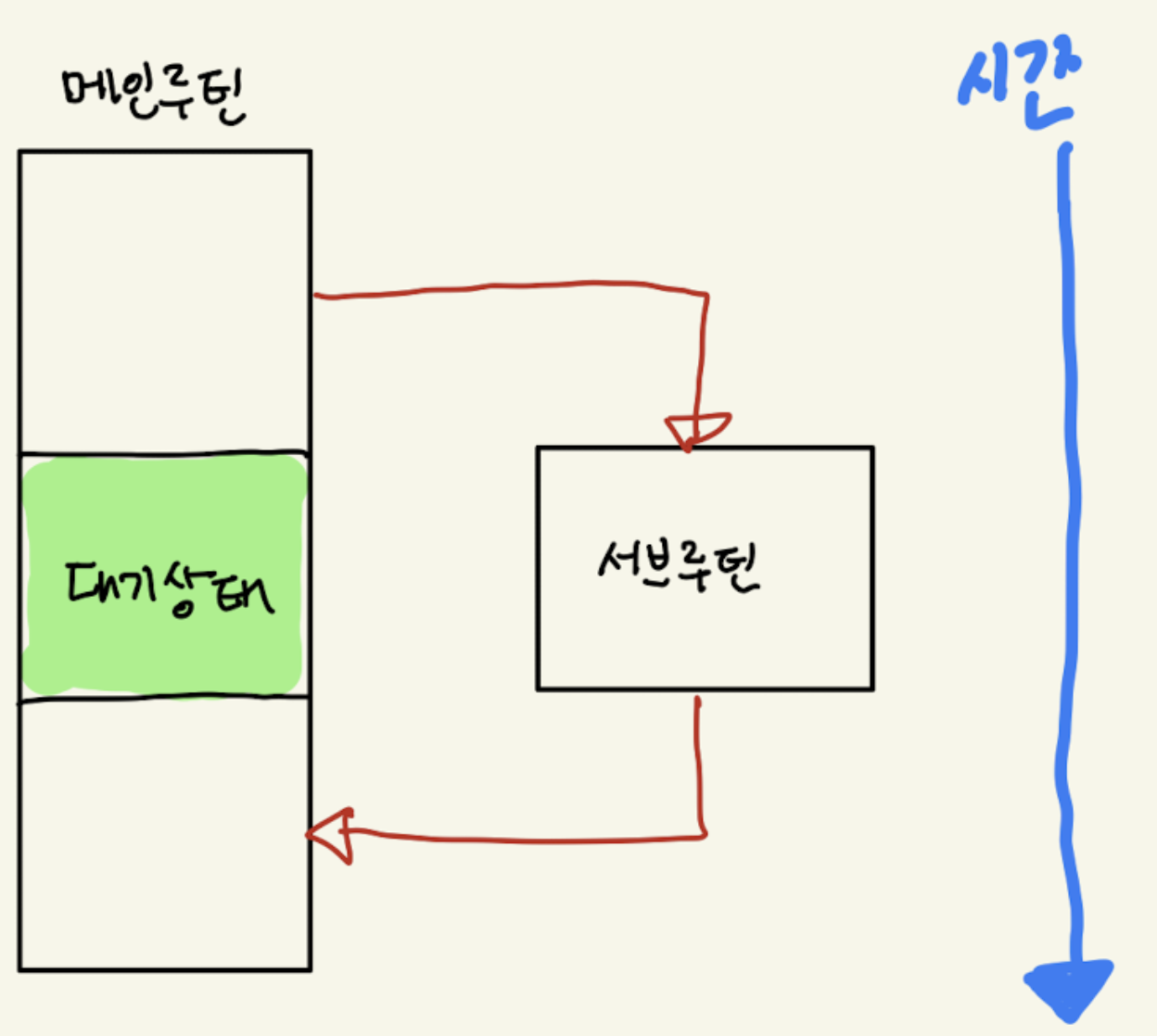 - 코루틴 함수가 종료되지 않은 상태에서 메인 루틴의 코드를 실행한 뒤 다시 돌아와 코루틴의 코드를 실행 한다